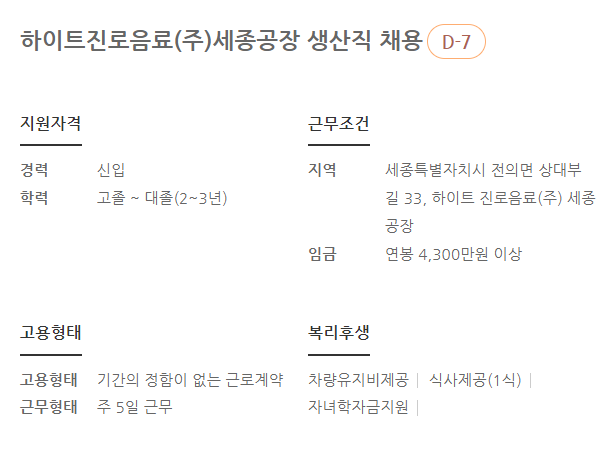 안녕하세요! 10년차 취업 컨설턴트가 전하는 하이트진로음료 생산직 합격 자소서 이야기