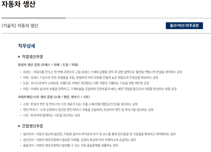 현대자동차 생산직, 어떤 일을 하게 될까요? (핵심 업무 리스트)